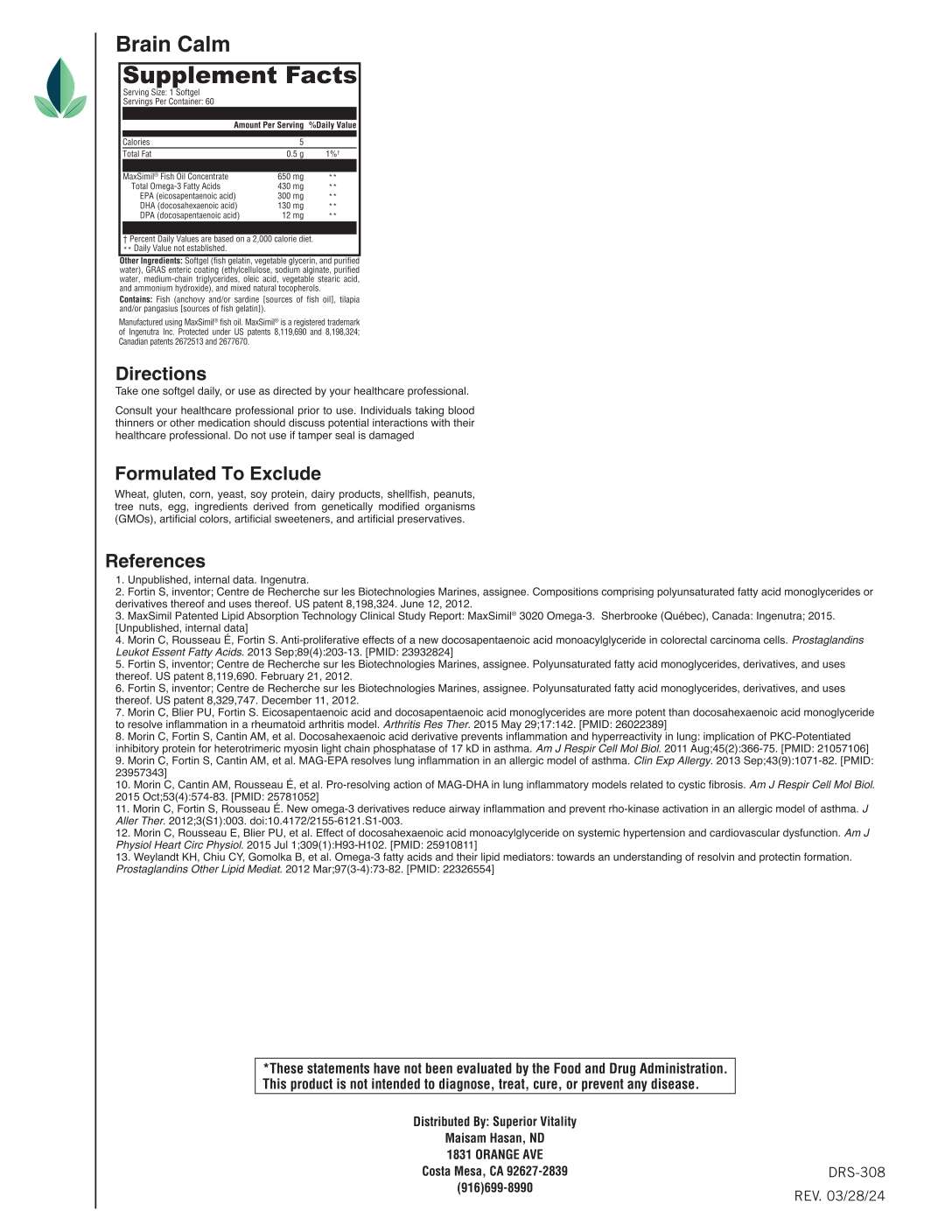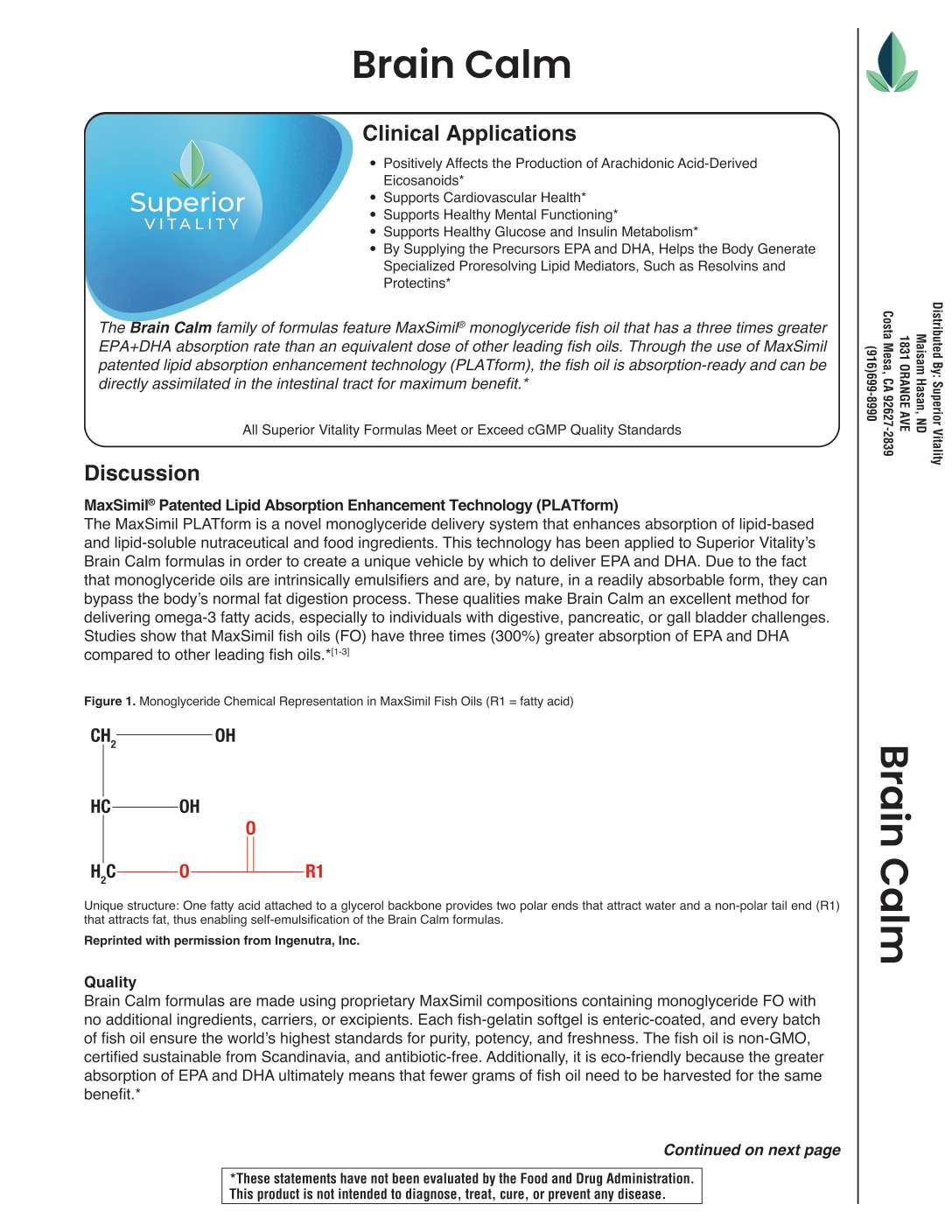 Superior Vitality Brain Calm™ Omega MonoPure is a high-performance omega-3 formula designed to support brain health, mood balance, and overall wellness—using advanced absorption technology for maximum effectiveness.
