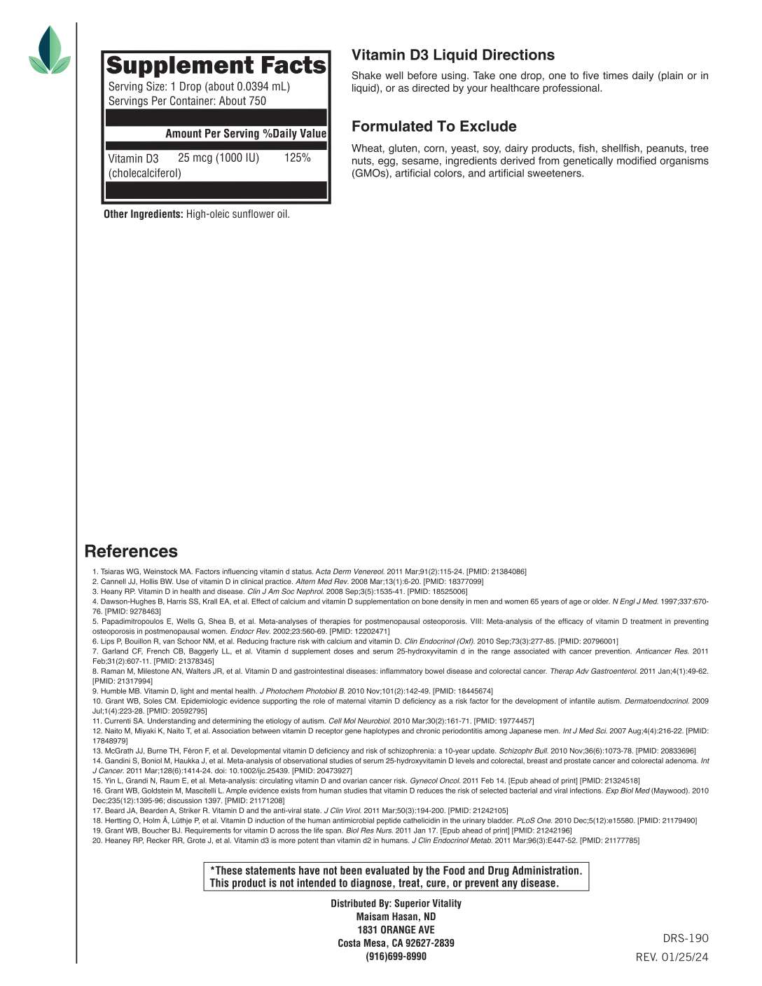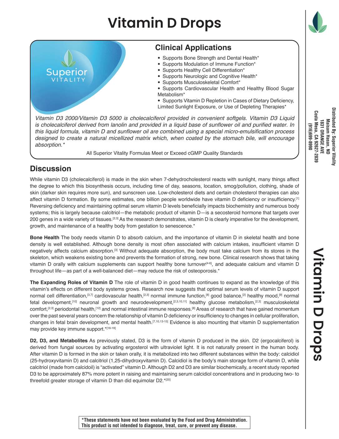 Superior Vitality Vitamin D Drops™ deliver a pure, natural source of vitamin D3 to support immune health, strong bones, and overall wellness—conveniently in an easy-to-use liquid form.